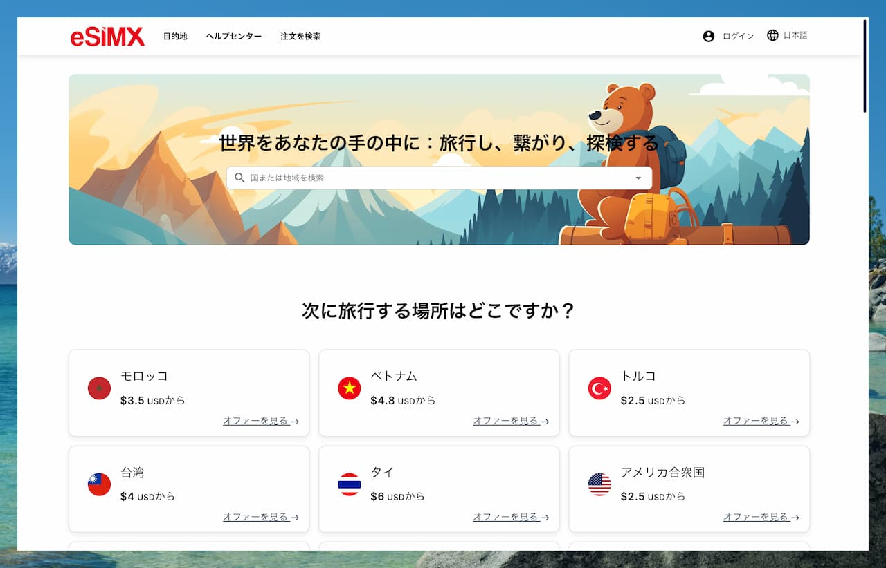 旅行先の国や地域から、簡単にプリペイドタイプの旅行用eSIMを検索・比較することができます。ぜひ利用してみてください 👇