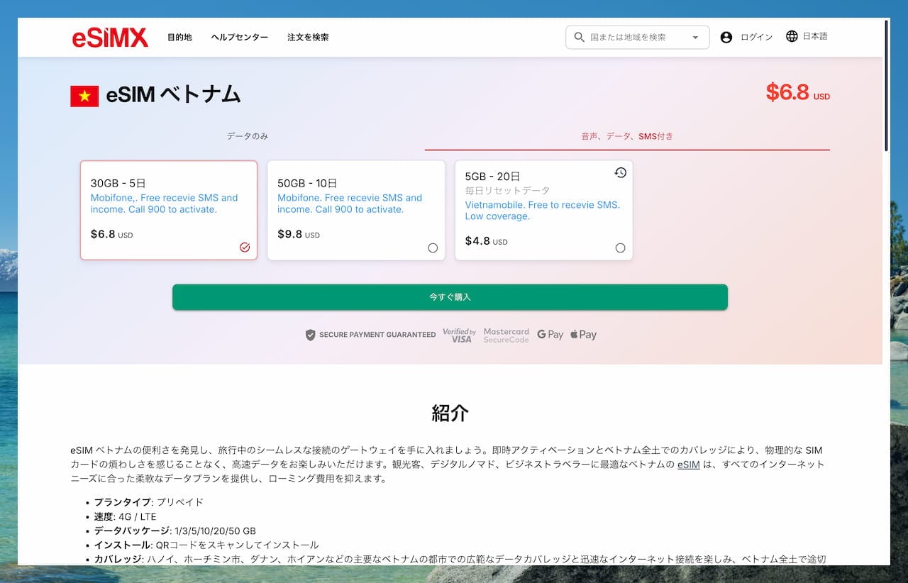 種類は多くないですが、eSIMXもMobifoneとVietnamobileという2社のベトナム現地eSIMを販売しています。