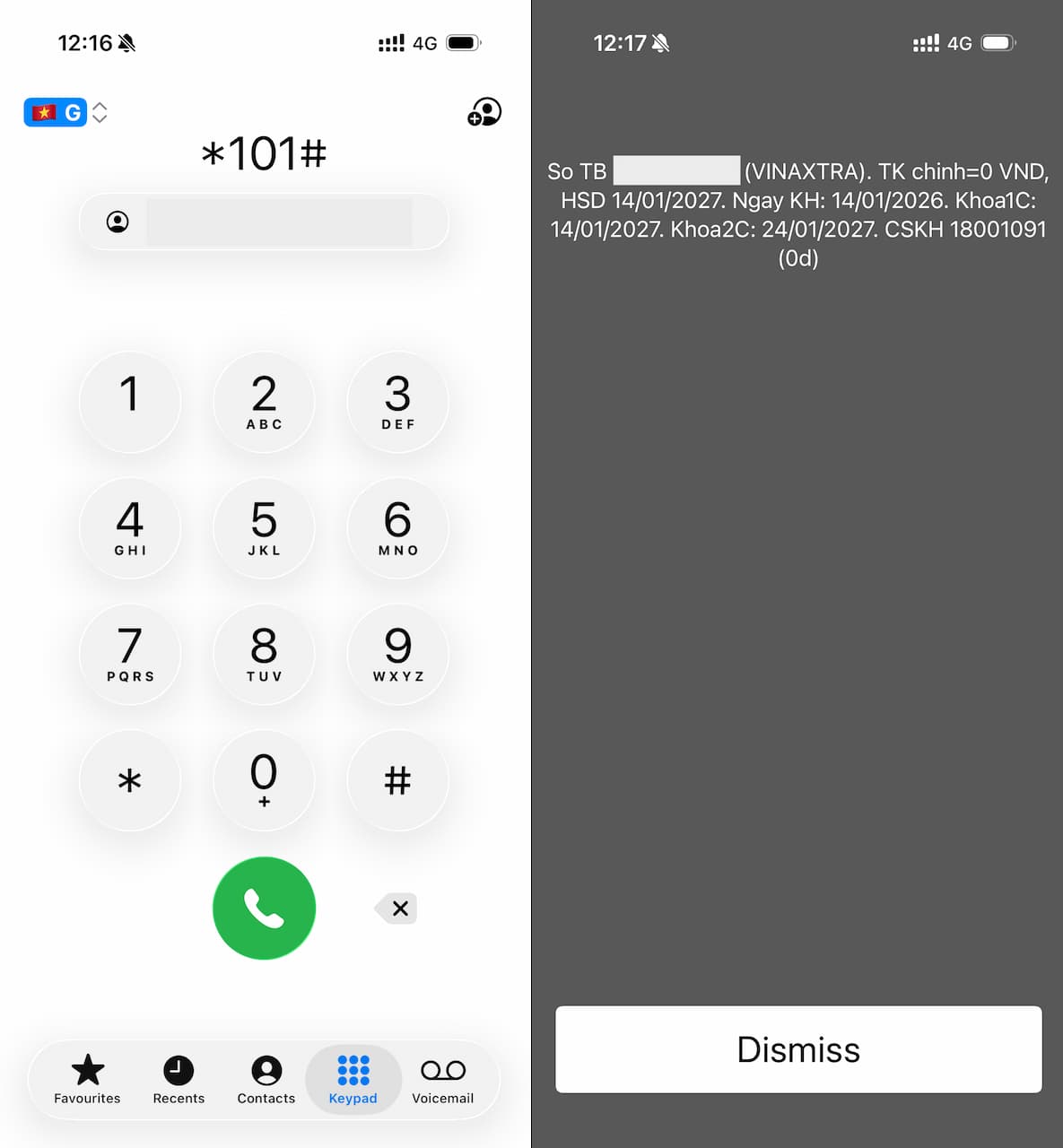 次に、電話番号(ベトナムの現地番号)の確認方法ですが、これはQRコードのメールに小さく記載があるだけなので見落としがちなのですが、*101# とダイアルすれば、画面上に表示されます。